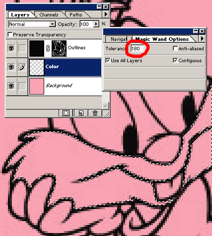 «Outline» and «Background». After that, I use «Magic wand» tool to select