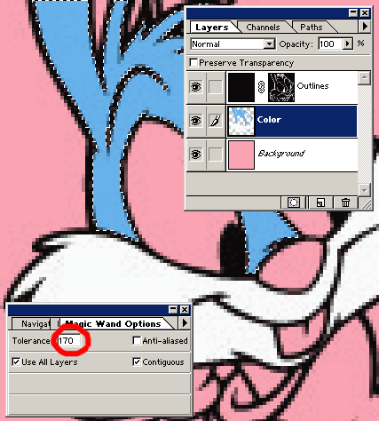 regions. Look, we need set «Tolerance» parameter to catch all gray pixels in